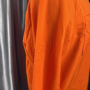 Under Armour HeatGear Men's Large Shirt Loose Fit Long Sleeve Button Up Ventilating Utility Bright Orange Zippered Pockets Spellout Gorpcore Athletic Activewear