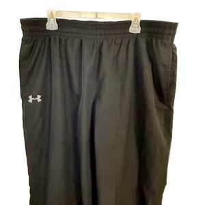 Keywords: Under Armour, HeatGear, Track Pants, Athletic Pants, Workout Pants, Running Pants, Black Pants, Mens Pants, XXL, Extra Extra Large, Loose Fit, Zip Leg, Activewear, Training Pants