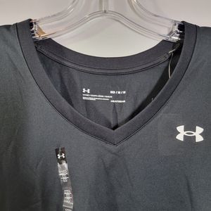 Under Armour HeatGear Tech Short Sleeve V-Neck Shirt Women's M Black Solid
