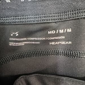 Under Armour HeatGear Compression Leggings Women's Size Medium – Black Color, Capri Length, Pull-On Style, High-Stretch Performance Fabric, HeatGear® Moisture-Wicking Technology, Compression Fit for Muscle Support, Wide Elastic Waistband, Lightweight and Breathable, Ideal for Training, Running, or Activewear Layering.