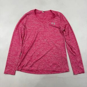 Under Armour Heatgear Loose Pink Space Dye L/S T-Shirt V-Neck Stretch Women Sz S