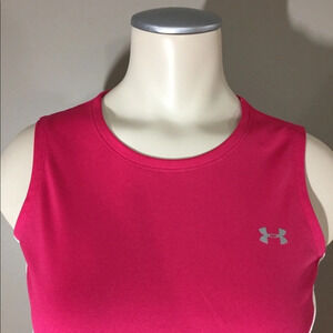 Pre-owned Under Armour heatgear sleeveless athletic top in XS. Bright pink with white details. Worn twice, in perfect condition. From smoke free and pet free home.