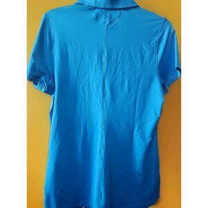 The Under Armour HeatGear Women's Small Fitted Golf Polo is a stylish and functional top designed for various occasions. This solid blue polo features a collared neckline, short sleeves, and a pullover closure, making it easy to wear for travel, casual outings, or workwear. Made of 93% polyester and 7% elastane, this shirt provides UV protection, moisture-wicking, and breathable properties, perfect for all seasons. With its classic and sporty theme, this polo is a versatile addition to any wardrobe, showcasing the signature Under Armour logo as an accent.