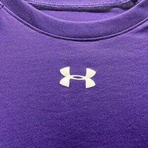 (All clothing items have been laundered per online reselling policy.)Under Armour Heatgear Youth XL Purple Loose Fit T-Shirt Logo UA Logo