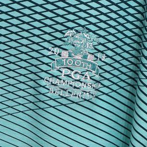 High-quality Under Armour Heatgear men's 2XL golf shirt. Features an aqua PGA 100th Championship design, a stylish collar, and 3 buttons. Crafted from a comfortable polyester blend in a vibrant green. Comes from a smoke free home.