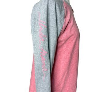 Pink with gray sleeves, and Under Armour down one sleeve
