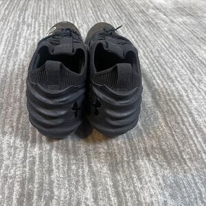 Features a bold marbled black synthetic upper with Under Armour logos on sides and heels