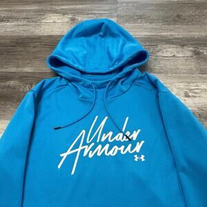 Under Armour Hoodie Blue Womens XL Loose Spell Out Cotton Fleece Pullover Hoodie Signature Cursive