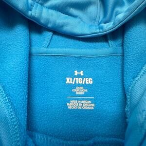 Under Armour Hoodie Blue Womens XL Loose Spell Out Cotton Fleece Pullover