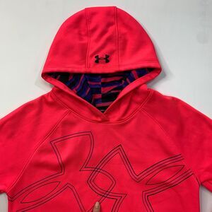 Under Armour Hoodie Girls M Medium Neon Pink Coldgear Loose Dual Logo Fleece