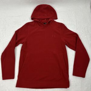 Under Armour Hoodie Mens Small Red ColdGear Fleece Pullover Kangaroo Pocket