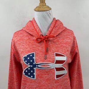Under Armour Hoodie Women S Small Red Space Dye Fleece Lined Patriotic Flag Logo