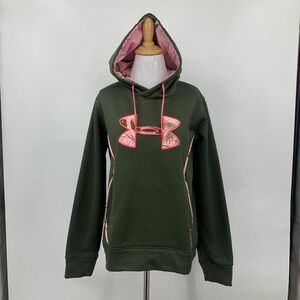 Under Armour Hoodie Womens L Large Moss Storm Semi Fitted Fleece Lined Camo Logo