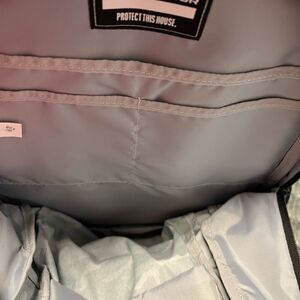 Front sleeve with bungee adjust closure for easily stashing a jacket, pair of shoes or ball