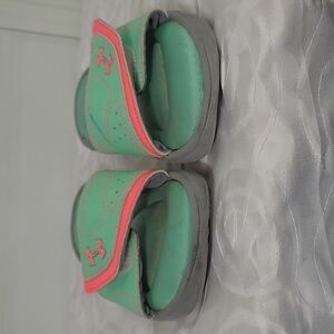 Keywords: Under Armour Ignite Mint Green & Neon Pink Slide Sandals w/ Memory Foam Footbeds