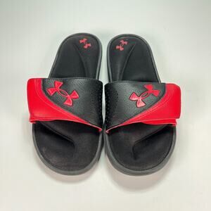 Under Armour Ignite VI Black Red Sandals Flip Flops 3022711-001 Men's Size 8