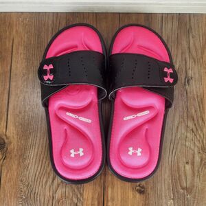 Under Armour Ignite VI Slides Youth Size 2Y Black Pink Adjustable Strap Sandals