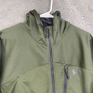 Under Armour Jacket Large ColdGear Reactor Full Zip Fleece Hoodie Green Fitted