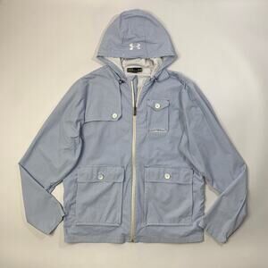 Under Armour Jacket Mens L Large Blue Striped Seersucker Hooded Vented Pockets