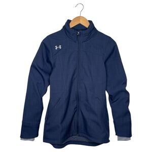 Under Armour Jacket Women's Loose ColdGear Pockets Full Zip Hoodie Sporty Blue Size X-Small - 100% Polyester ColdGear. Inner cuffs with thumb holes. Full zip. Packable hoodie. Zip pockets. Long sleeves. Activewear, Gorpcore, Casual Bust - 18 inches Length - 25.5 inches Great pre-owned condition - Embroidery Removed Left Chest - see pics and ask questions for more details.
