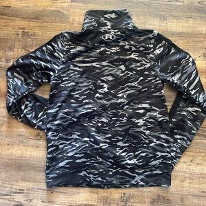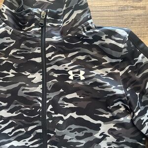 Stylish camo design. Full zip closure. Comfortable fit. Perfect for outdoor activities.
