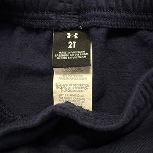 Comfortable navy sweatpants with elastic waistband. Features orange Under Armour logo.