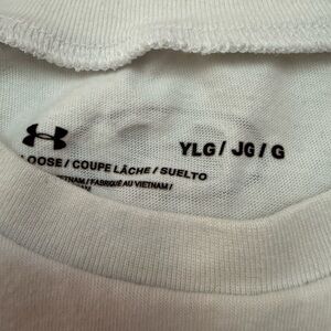 Vibrant orange tee with bold logo. Classic white tees with unique designs. Perfect for active kids. 2YL 1YXL Price listed is for all. They have stains and one has a tiny hole.
