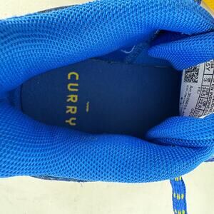 Vibrant blue sneakers with yellow accents. Comfortable and stylish. Perfect for active kids.