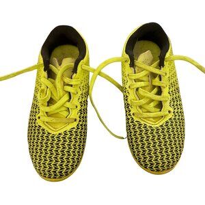 Bright, bold, and built for the field! These Under Armour Kids Soccer Cleats (Size 10K) feature a striking neon yellow and black zig-zag design with molded firm-ground studs for great traction on grass. Lightweight synthetic uppers make them easy for little feet to run, kick, and move comfortably.