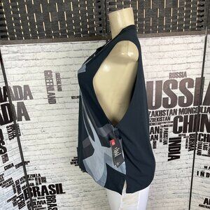 ITEM: Under Armour L Black -Gray Geometric Print Crew Neck Heatgear Tech Muscle Tee