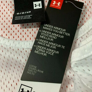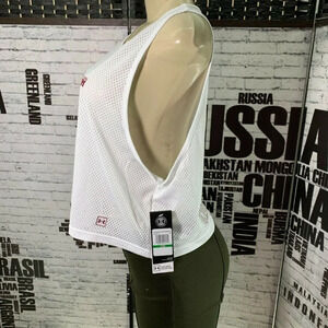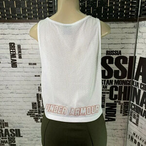 ITEM: Under Armour L White Logo Sheer Mesh Scoop Neck Crop Tank Top