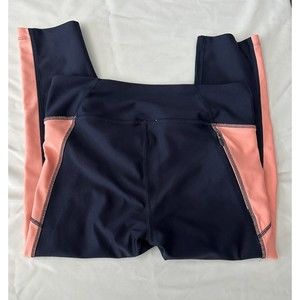 Under Armour Ladies Blue Pink Activewear Capri Pants Tights 28 waist and 19 Inseam Workout leggings. No tags but measures like a small Great condition