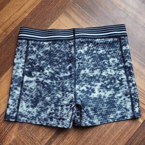 Under Armour Ladies Compression Shorts Size Medium. Black and white blended design. Wide elastic band. Great for weight lifting and workouts at the gym.