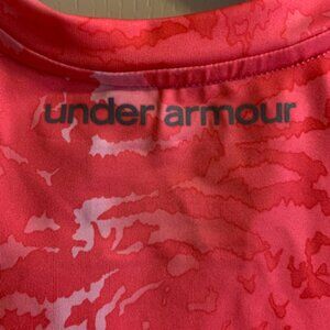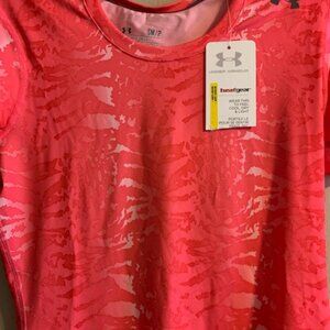 Under Armour Women's Size S Poly/Spandex Pink/White Pattern, Short Sleeve, Heat Gear, Breathable Fitted, Cool, Dry & Light T-Shirt. Great for working out, running, tennis, any activity. NWT 25.5" length
