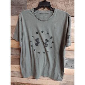 Under Armour Large Men's Army Green Short Sleeve Shirt American Flag Heatgear