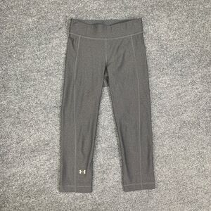 Under Armour Leggings Womens S Gray HeatGear Fitted Pull On Capri Logo Waistband