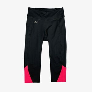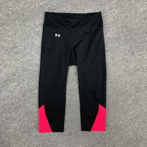 UNDER ARMOUR LEGGINGS WOMENS S SMALL BLACK NEON PINK PULL ON RUNNING CAPRIS