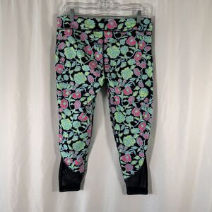 Under Armour Leggings youth YXL Black Green Floral Pull On Stretchy High Rise