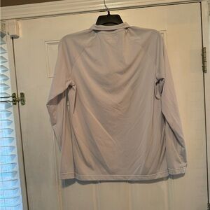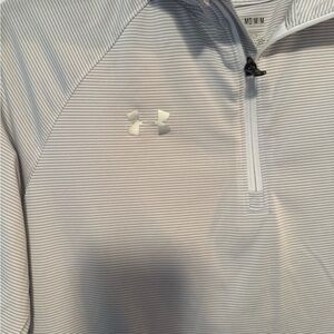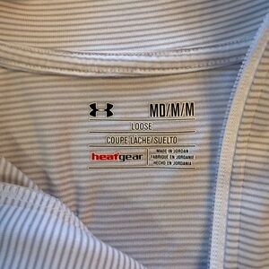 Light gray Under Armour shirt. Features HeatGear technology. Loose fit for comfort.