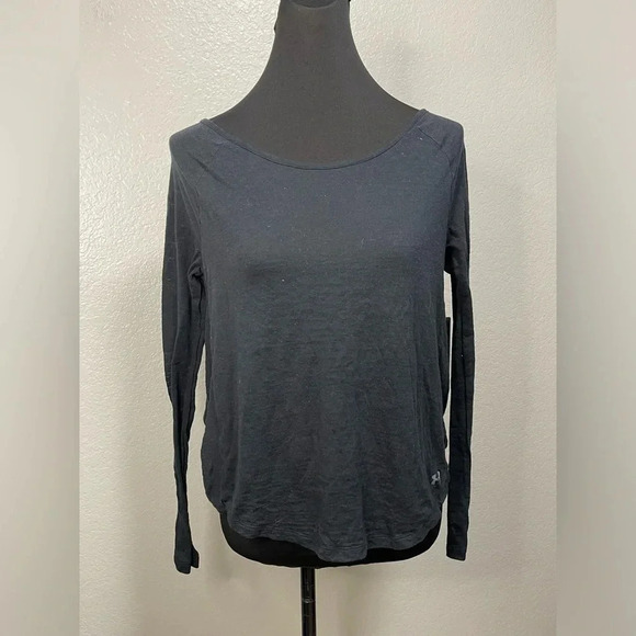 Under Armour Long Sleeve Black Open Back Criss Cross at hem workout top small