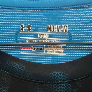 An Under Armour Long sleeve HeatGear® Fitted Shirt . Size Medium and In Great Condition !!! Shirt Is Blue and Black.