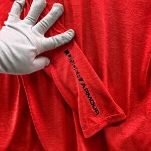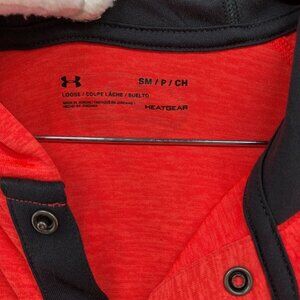 Under Armour Long Sleeve T-Shirt Mens S Hooded Red Henley Heatgear Loose