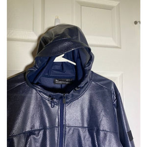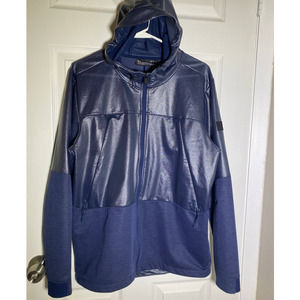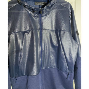 Under Armour Long Sleeve Zip Up Unstoppable Blue Mens Track Jacket 1306456 001 in NAVY color. Jacket is in great condition, zip clousure, hood, lightweight jacket. Size Large fitted.