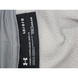 Under Armour's Loose Cold Gear Hooded Sweatshirt in size Large offers unrivaled comfort and warmth. The gray sweatshirt features a pink hood, perfect for casual wear or workouts.