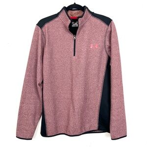 Under Armour Loose Coldgear Quarter Zip Sweatshirt Burgundy Striped Medium