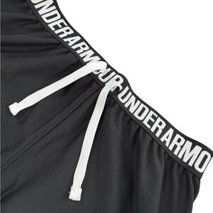 Under Armour Loose Drawstring Black Shorts + White Logo Waist Band Detail