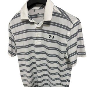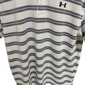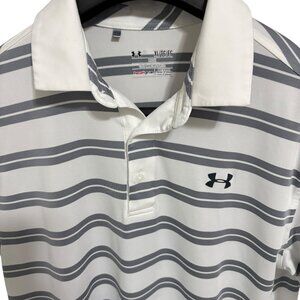 Under Armour Loose Fit Golf Polo Size XL Striped Stretch White