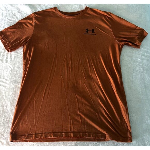 Under Armour Loose Fit Mens T-Shirt Medium Burnt Orange Crew Neck Athletic Tee.