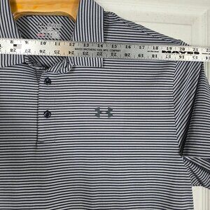 Under Armour Loose Fit Polo Shirt 2XL Short Sleeve Black Gray Striped Golf
