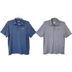 Under Armour Loose Fit Polo Shirt Set Men’s Size 2XL Blue Gray Stripe Lot